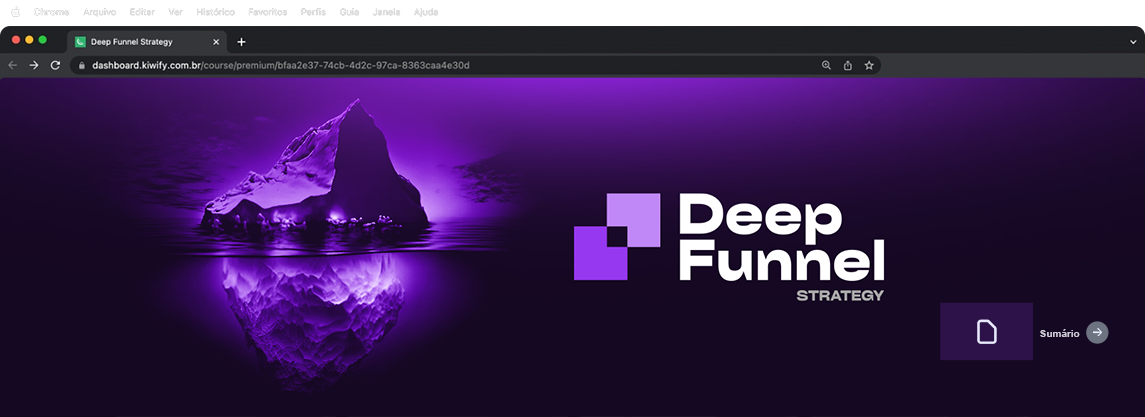 O material do curso é apresentado em formato de e-book PDF, dividido em seções dentro da área de membros. Você receberá acesso imediato às Seções 1, 2 e 3. Após 7 dias, terá acesso à 4ª Seção. Após 15 dias da data da compra, você terá acesso às Seções 5 e 6, que são bônus anunciados. Após esses 15 dias, você também receberá ao “Full Book”, e-book completo com todas as seções e módulos do Deep Funnel Stategy em um único arquivo PDF. O Full Book inclui um sumário com links clicáveis que direcionam você diretamente para a página da seção específica.